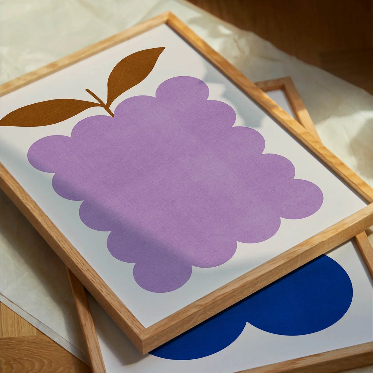 Avec ses jeux de courbes graphiques, l’illustratrice londonienne Juliette van Rhyn créé des visuels aux formes, à la texture et au goût des bonbons et de la nature. L’affiche Lilac Berry évoque une forme abstraite mais immédiatement reconnaissable d’une baie ou d’un fruit. Avec ses couleurs douces et vibrantes, elle s’intègrera dans n’importe quel espace de la maison en apportant une touche amusante et ludique.