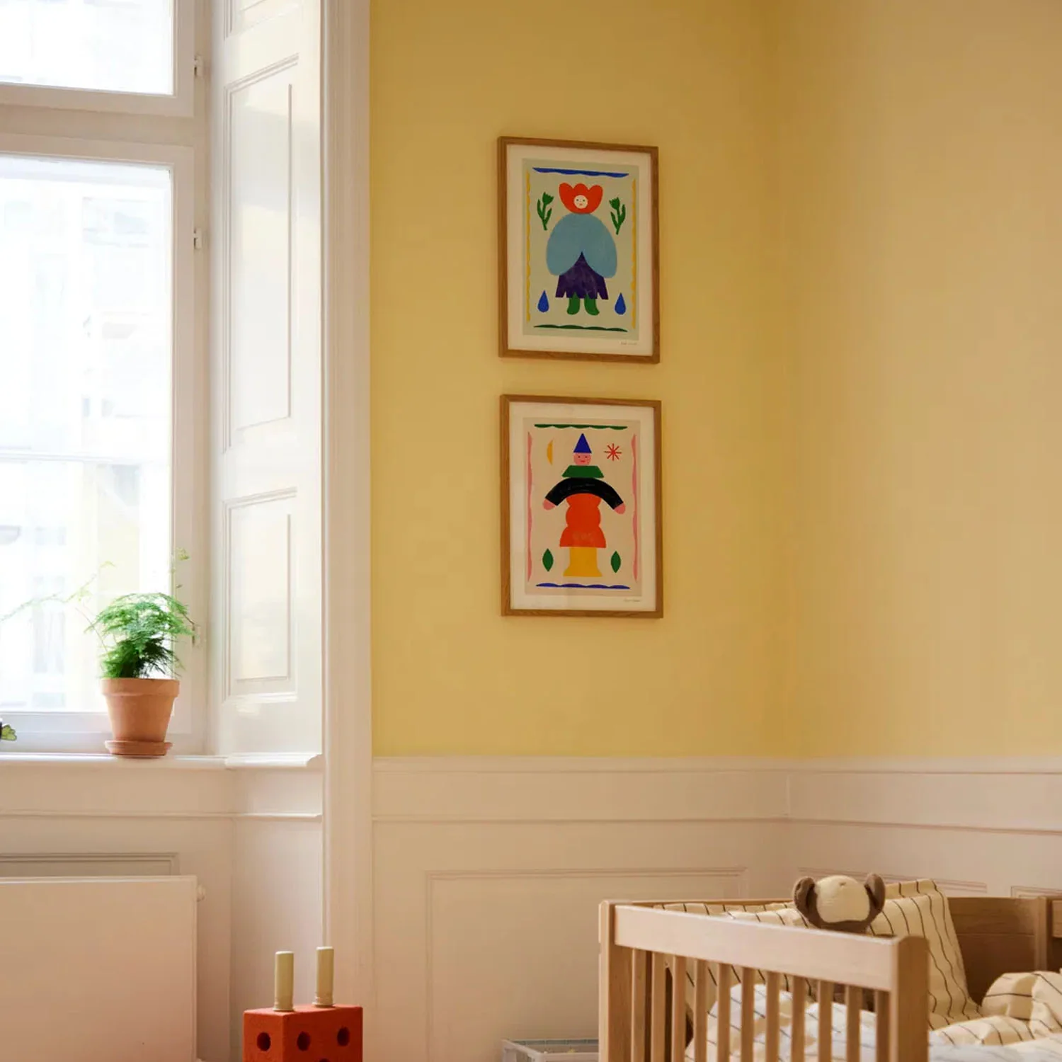 Cette oeuvre de l’illustratrice française Anne Laval est réalisée à partir de découpages, de gouache et de pastels. Elle représente un pantin ludique composé de formes géométriques simples, coiffé d’un haut-de-forme bleu éclatant. Une œuvre graphique et poétique qui apporte une touche d’originalité et de fantaisie à votre décoration ou à la chambre des enfants. […]