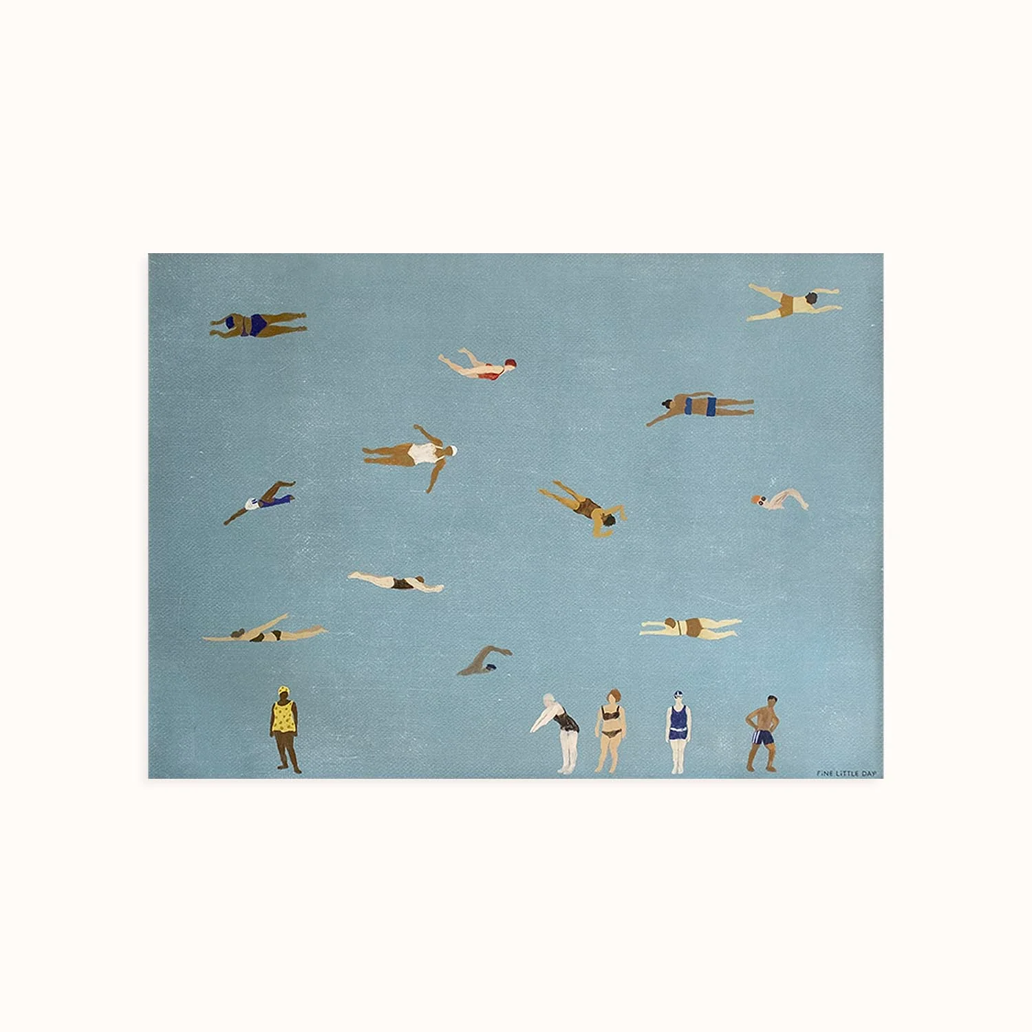 Peu importe la météo, on a envie d’aller rejoindre cette petite équipe de nageurs ! Le dessin original a été réalisé en Suède aux crayons et à l’acrylique par l’artiste Elisabeth Dunker, fondatrice de la marque Fine Little Day. L’affiche est vendue sans cadre.