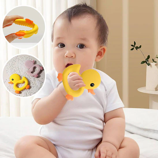 Découvrez notre anneau de dentition innovant, conçu pour apaiser les gencives douloureuses de votre bébé pendant la période de dentition. Fabriqué avec des matériaux sûrs et non toxiques, cet anneau offre un soulagement immédiat et stimule le développement oral de votre enfant.