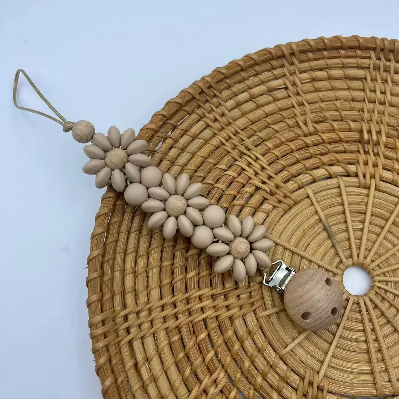 Attache-tétine fleur silicone Kalinatur™ – Douceur, sécurité & style bébé
