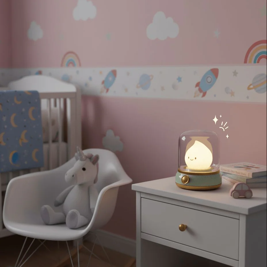 La lumière chaude de la veilleuse aide à calmer l’enfant et le prépare paisiblement au sommeil.