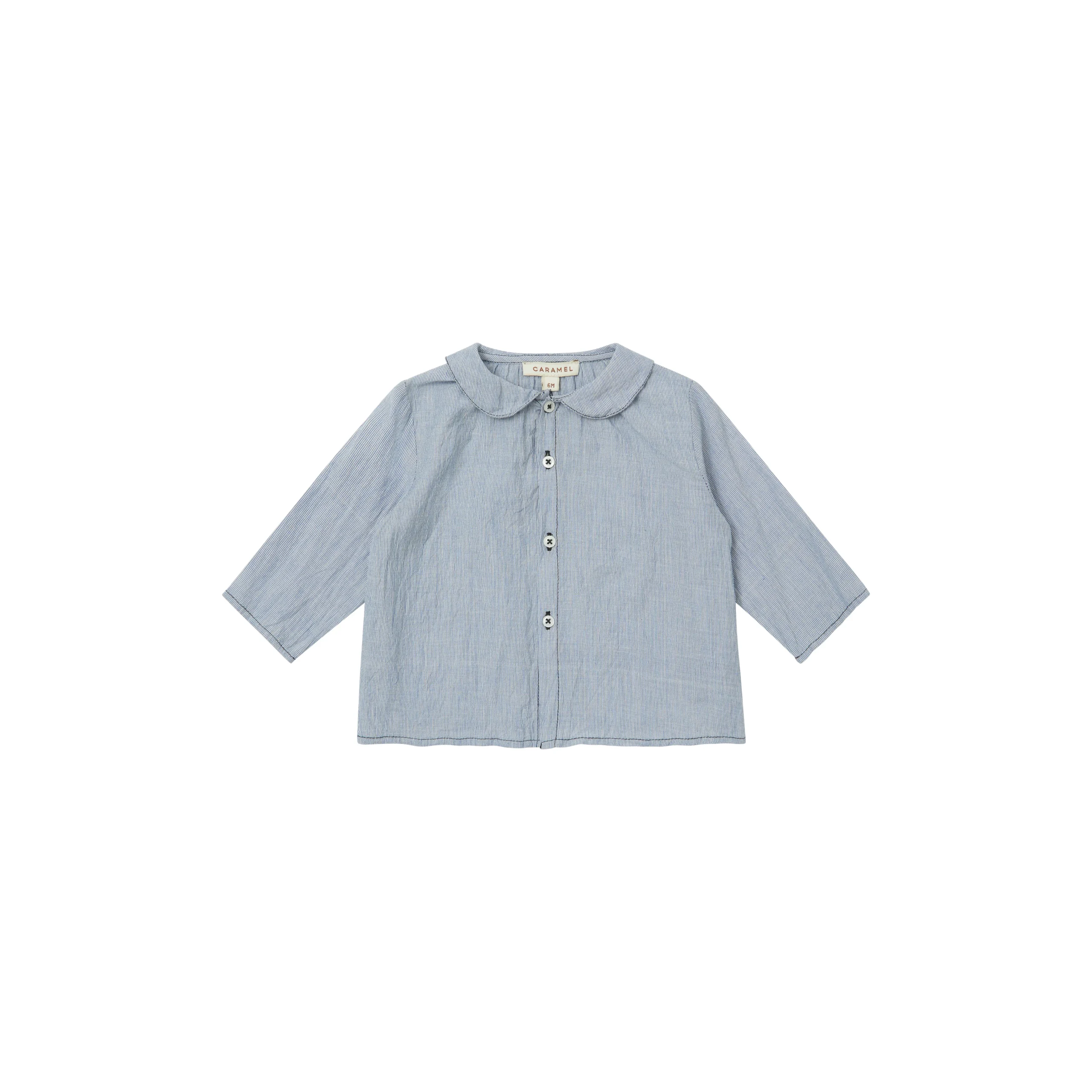 BLOUSE ALOE BLUE/WHITE STRIPE – CARAMEL