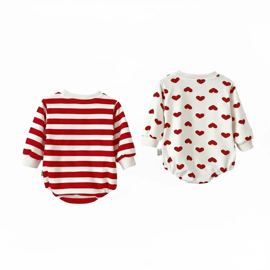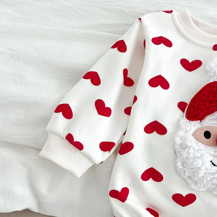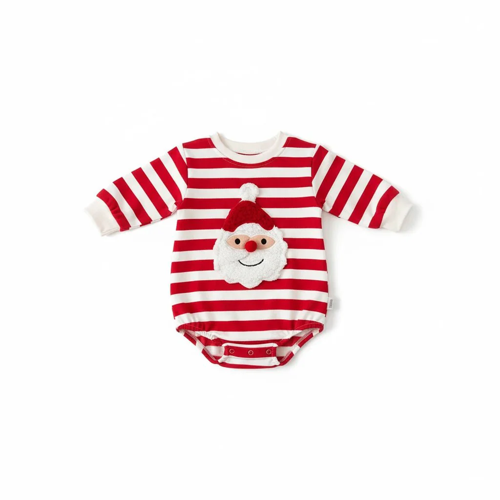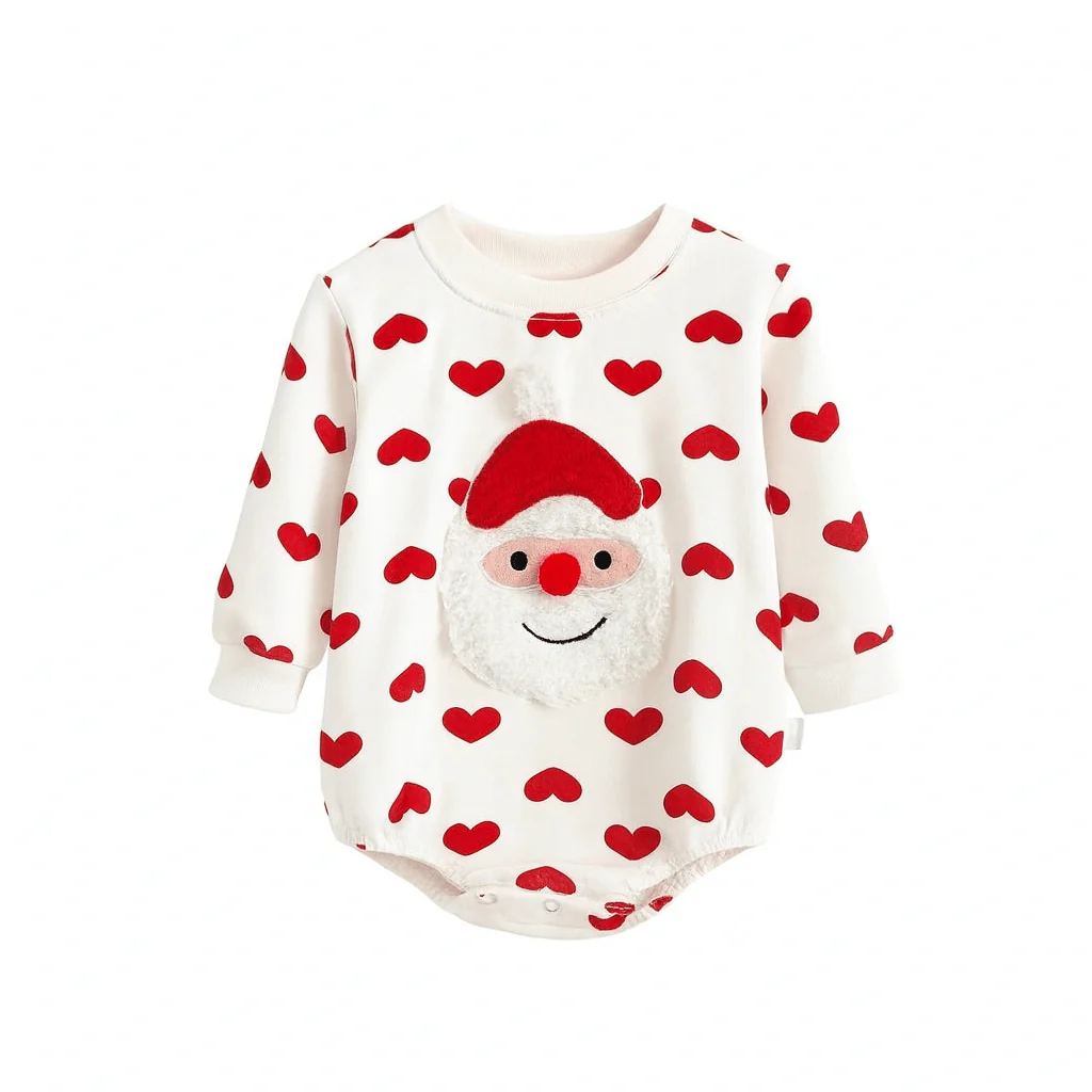 Chaque modèle, qu’il s’agisse du body imprimé cœurs et Père Noël ou de la combinaison rayée rouge et blanche, évoque la chaleur, la tendresse et la joie des fêtes.