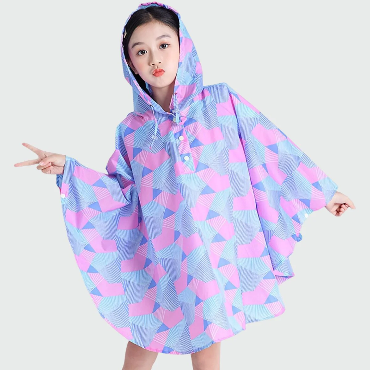 Ce poncho de pluie pour fille est un éclat de motifs géométriques en nuances de rose et de violet. Sa capuche offre une protection complète contre les intempéries. Les formes abstraites créent un design ludique et tendance, ajoutant une touche de couleur éclatante même par temps gris. Fabriqué dans un matériau imperméable de haute qualité, il assure un confort et une durabilité exceptionnels. C’est l’accessoire idéal pour égayer les journées pluvieuses avec style et originalité.