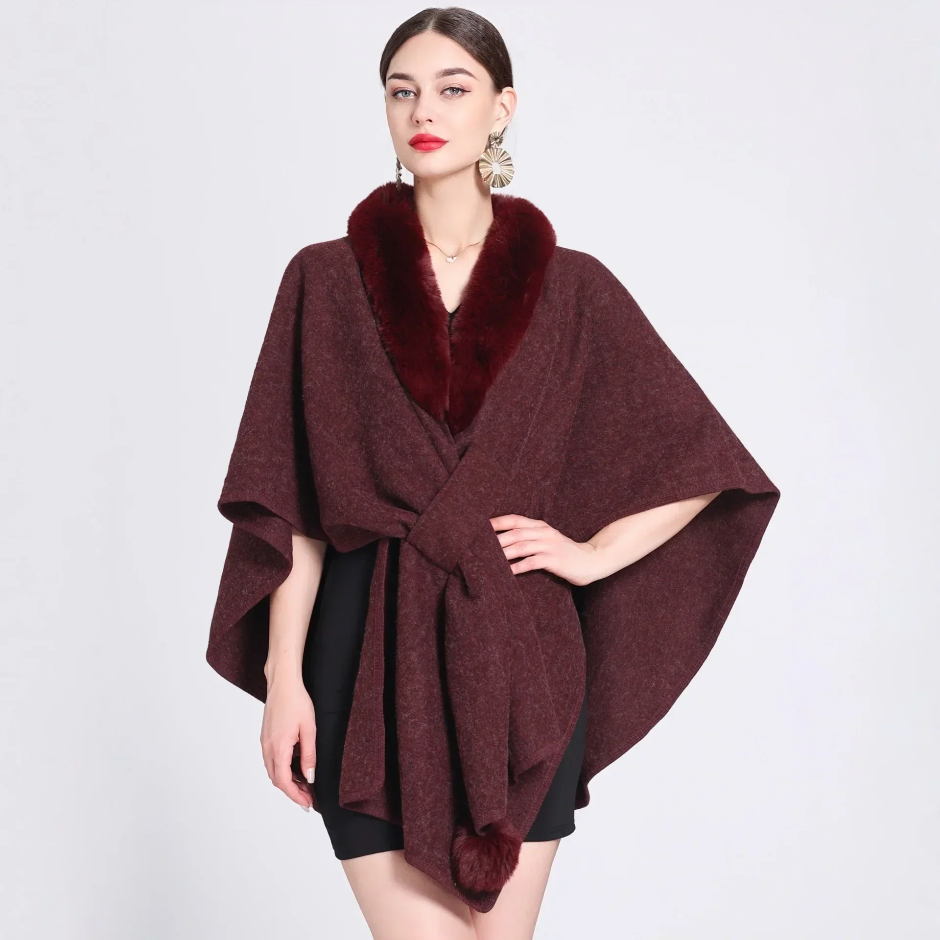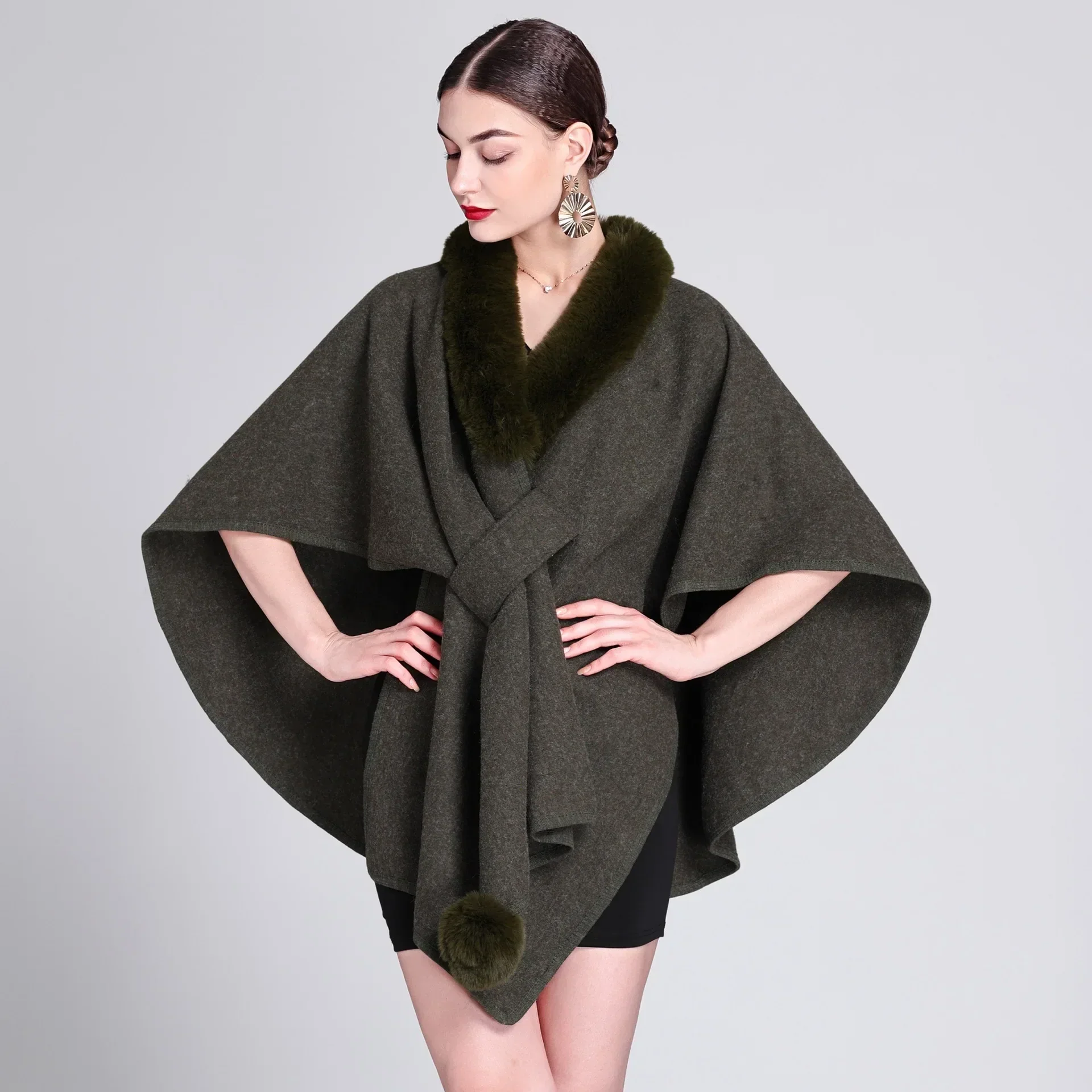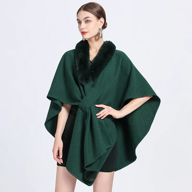 Poncho élégant croisé avec col fourrure