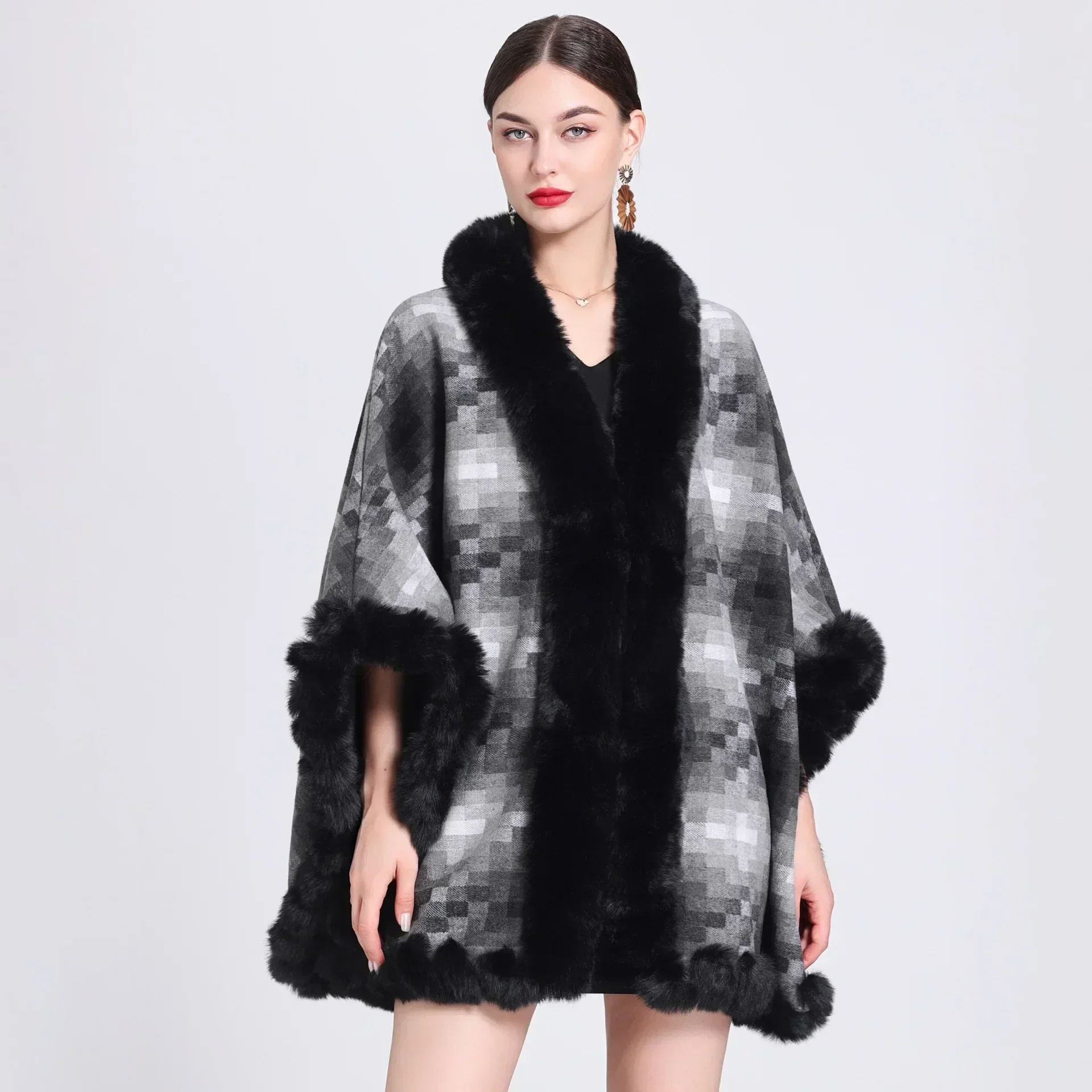 Cape élégante en fausse fourrure à motifs géométriques