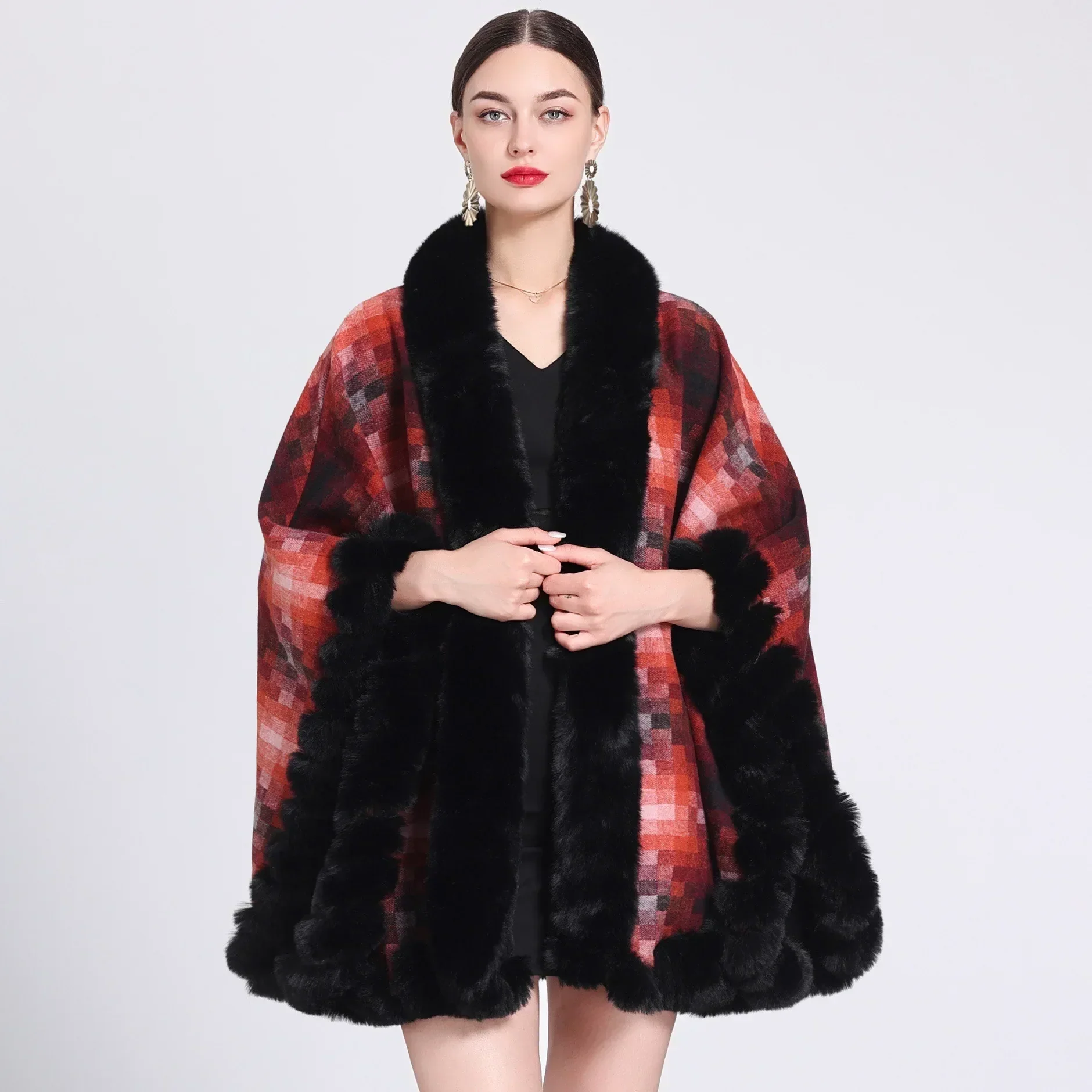 Cette cape en fausse fourrure offre un mariage parfait entre modernité et élégance. Ses motifs géométriques apportent une touche artistique, tandis que le bord en fausse fourrure noire ajoute du luxe à cette pièce. Disponible en plusieurs coloris vibrants et intemporels, elle est idéale pour rehausser une tenue classique ou apporter du dynamisme à votre style quotidien. Chaude et confortable, elle convient parfaitement aux soirées fraîches ou aux occasions spéciales. Ce vêtement allie esthétique et confort pour une allure chic et sophistiquée. Un choix incontournable pour celles qui recherchent style et originalité.