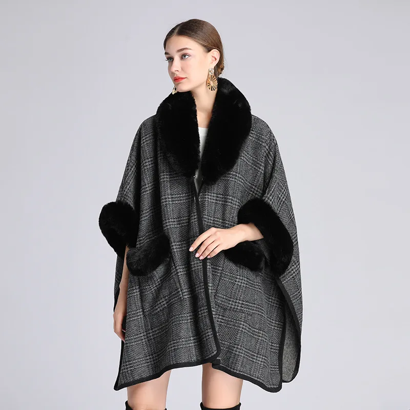 Cette cape poncho à carreaux vous enveloppe d’élégance et de chaleur cet hiver. Avec son col en fausse fourrure douce et ses bordures aux poignets assorties, elle allie sophistication et confort. Sa coupe ample et fluide, agrémentée de poches pratiques, en fait une pièce polyvalente parfaite pour toutes les occasions. Disponible en plusieurs coloris intemporels, cette cape poncho est idéale pour ajouter une touche de chic à vos tenues hivernales. N’attendez plus pour vous offrir ce modèle tendance et pratique. Commandez dès aujourd’hui et affrontez le froid avec style et confort !