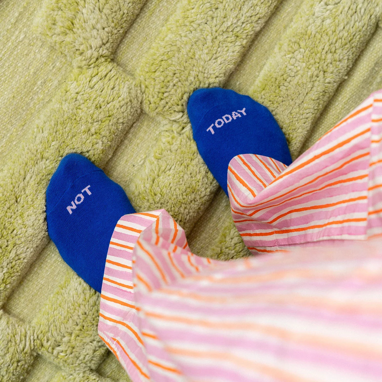 Affichez clairement votre humeur avec les chaussettes « Not Today » en bleu de Tarta Gelatina. Confortables, douces et pleines de caractère, elles sont l’accessoire parfait pour dire stop aux journées trop chargées.
