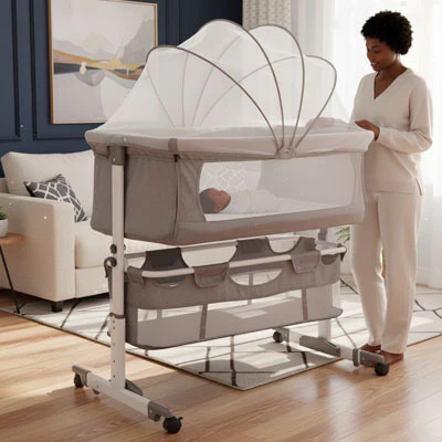 La hauteur ajustable permet d’aligner parfaitement le berceau avec votre lit, facilitant l’allaitement nocturne sans vous lever complètement.