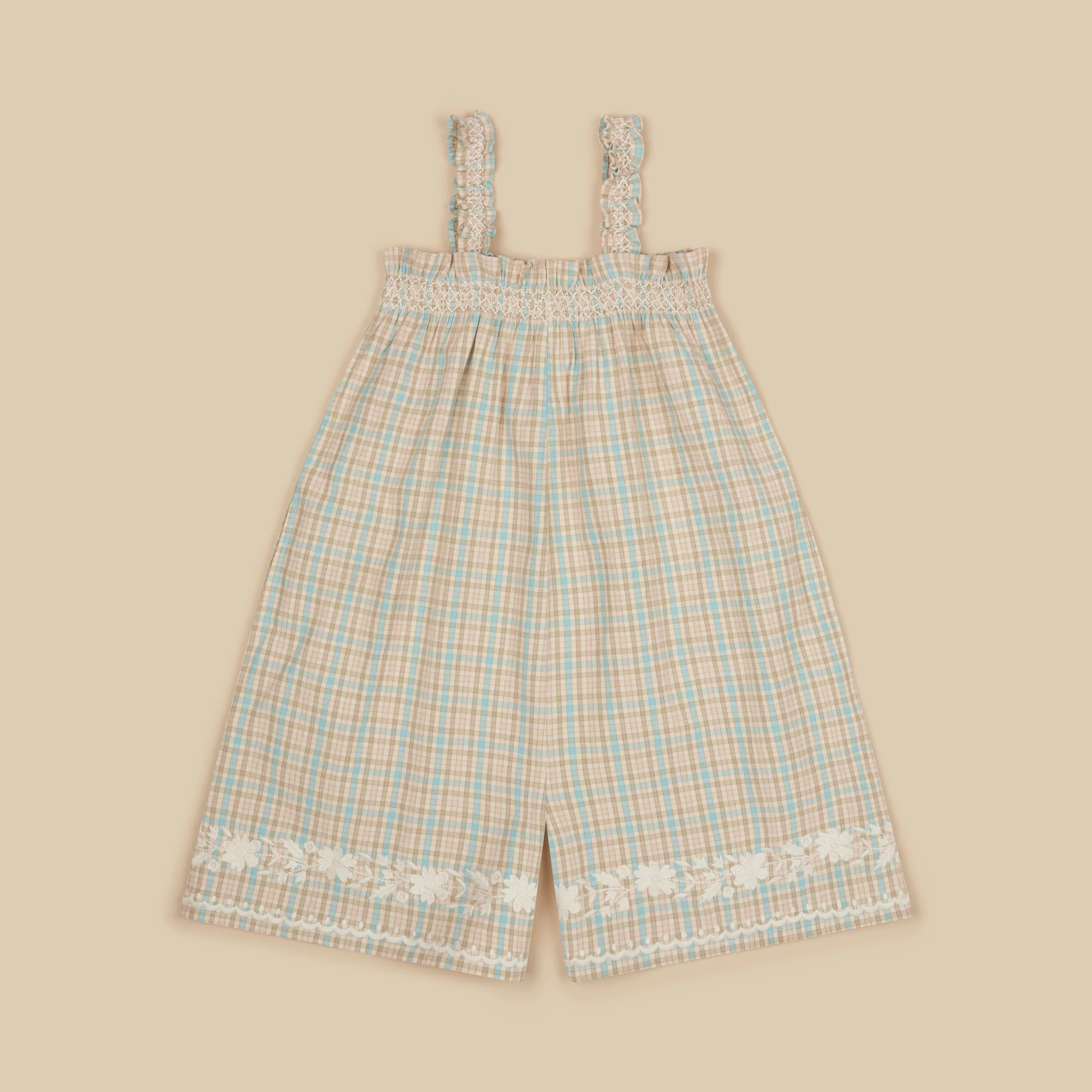 Combinaison facile à enfiler pour tous les jours, Adina séduit par ses carreaux arc-en-ciel pastel. Des smocks à la main terminent la poitrine et les bretelles, et de jolies broderies bordent la jambe. Avec sa coupe décontractée et facile, Adina est parfaite pour rester au frais tout en jouant les jours ensoleillés. Nous l’adorons portée seule ou superposée à un t-shirt préféré.