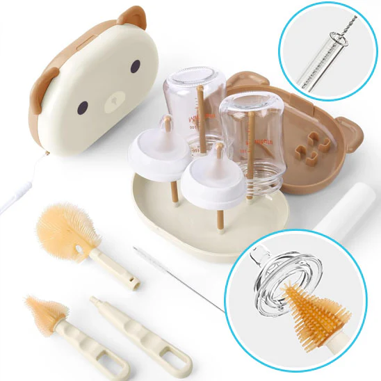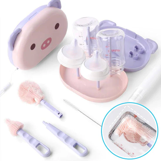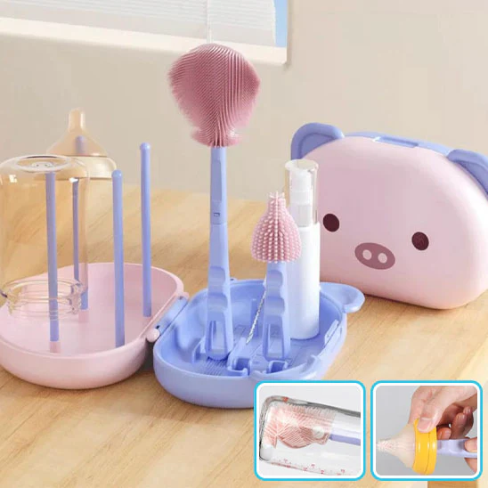 Notre égouttoir biberon est conçu pour simplifier la vie des parents. Avec son ensemble de brosses spécialement adaptées, vous pouvez nettoyer en profondeur chaque recoin de vos biberons, tétines et autres accessoires. Le support de séchage permet ensuite de les disposer de manière hygiénique, assurant un séchage rapide et sans trace.