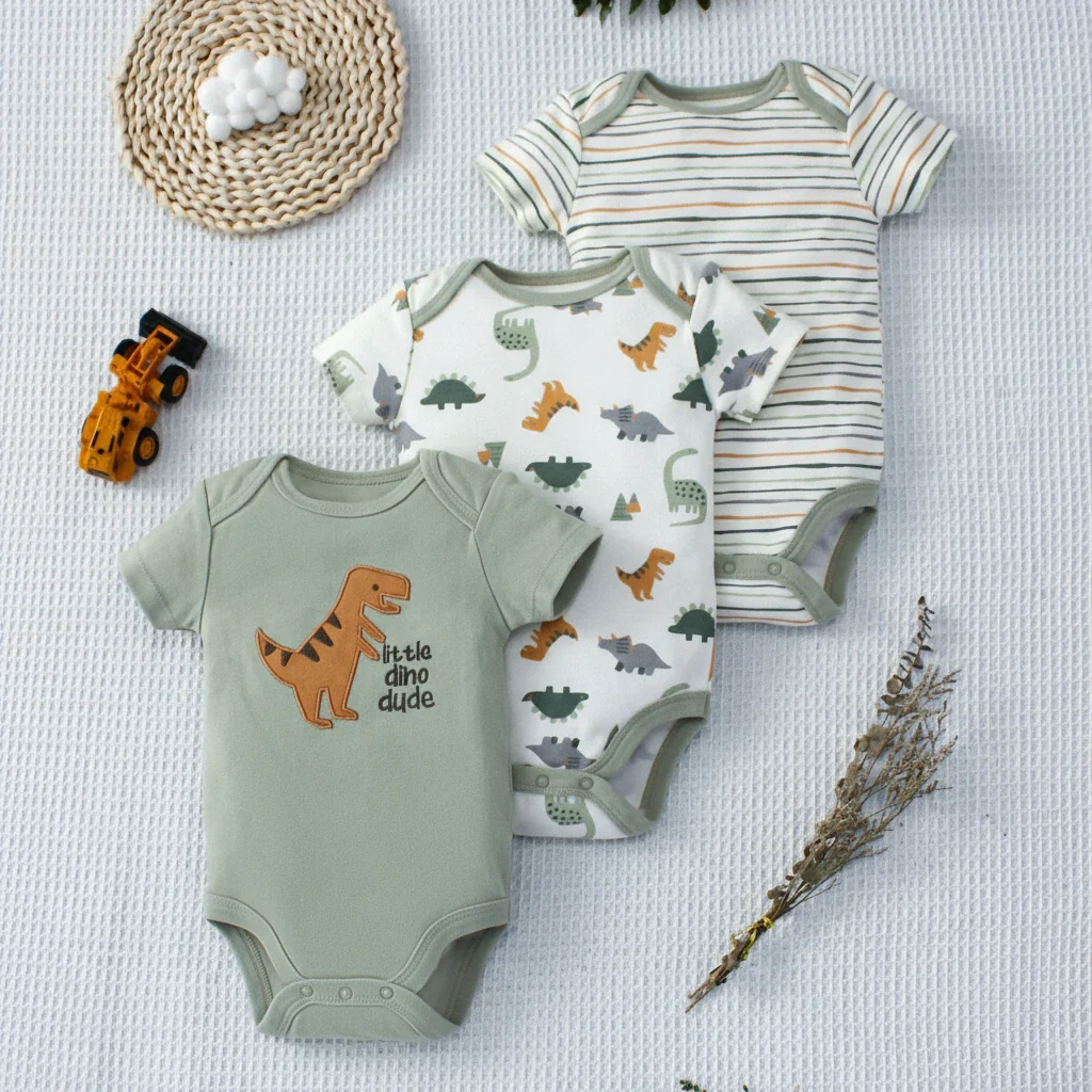 Ensemble 3 pièces bébé – Body d’été coton à motif