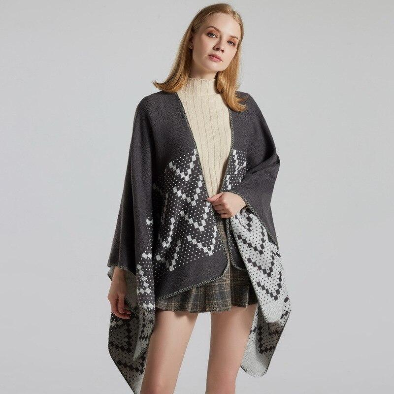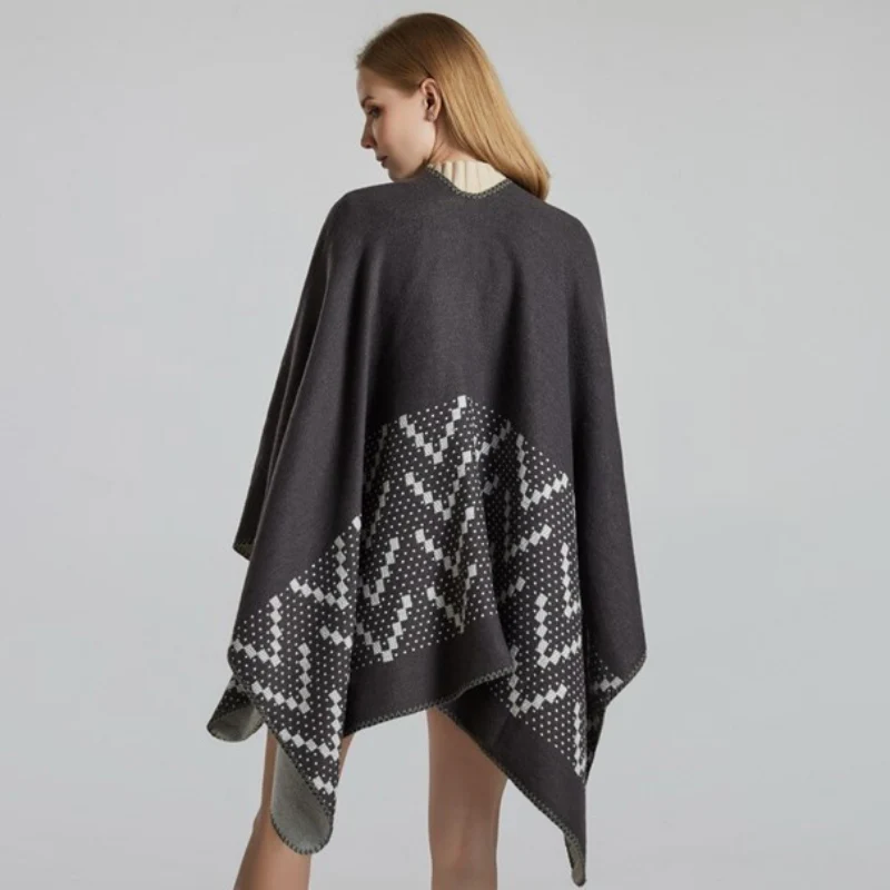 Ce poncho gilet pour femme d’une très grande élégance, tant par ses couleurs que par ses motifs artistiques, vous enrobera de douceur et de chaleur pendant toutes vos activités hivernales. Son design chic et moderne en flèches verticales ne laissera personne indifférent. Cette cape se porte en toute occasion et convient à toutes les morphologies. Vous pouvez la porter avec une robe ou une jupe courte et des talons hauts pour une touche de féminité en plus.