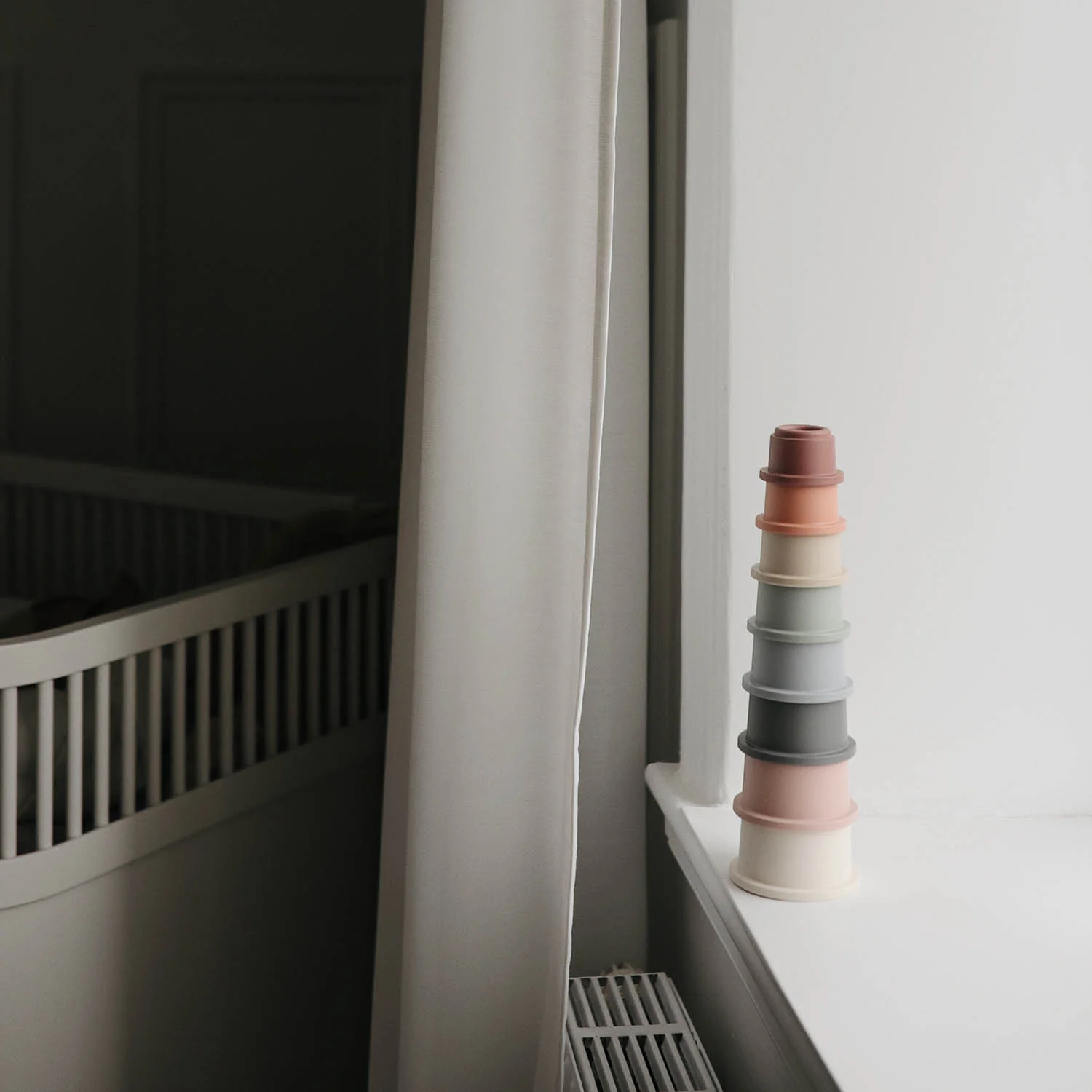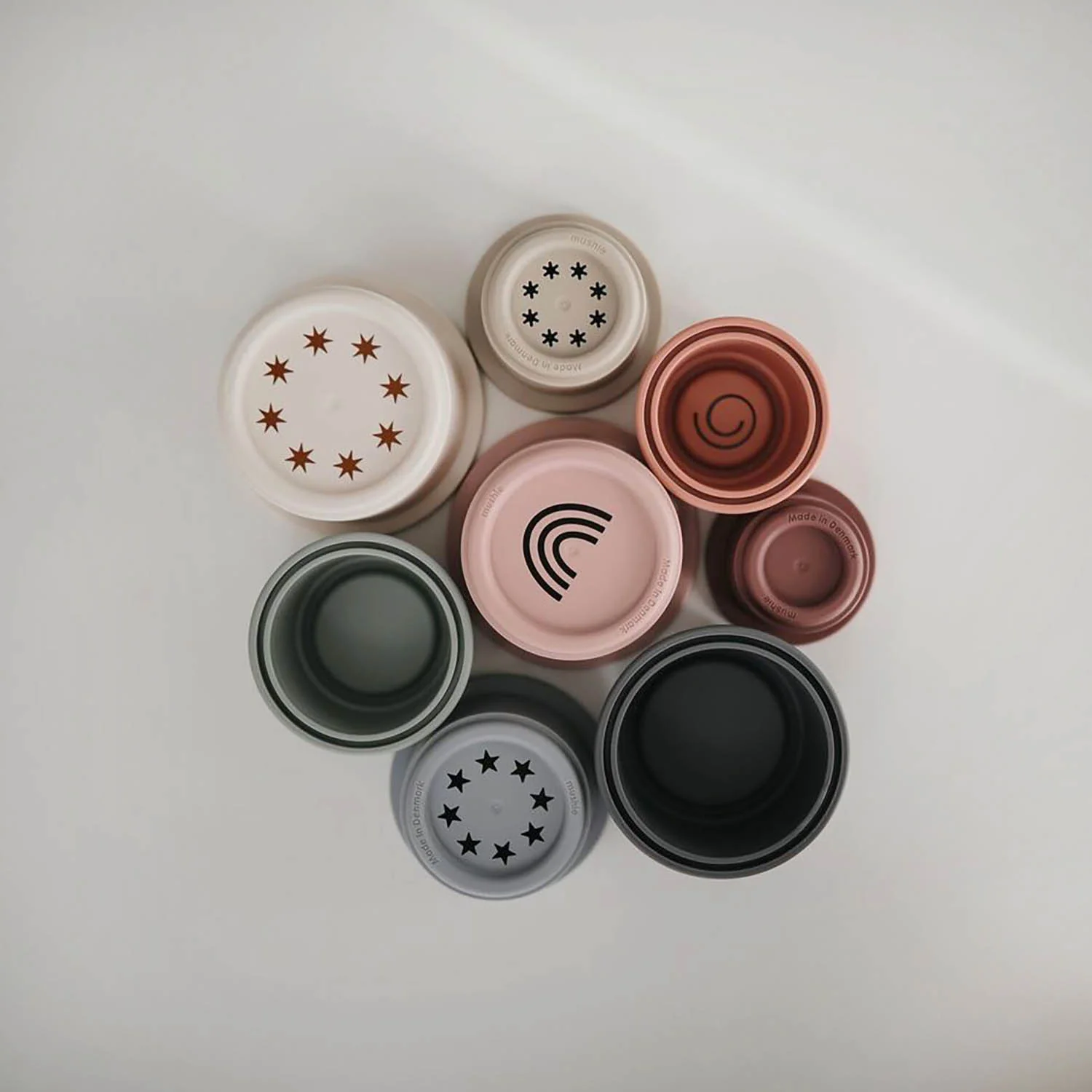 Empiler, les enfants adorent ça ! Ce set de gobelets Mushie se compose de 8 pots de différentes couleurs à empiler ou emboîter pour stimuler les sens des bébés et leur motricité dès 6 mois. Empilés, ils ressemblent à la fameuse tour Rundetårn de Copenhague !