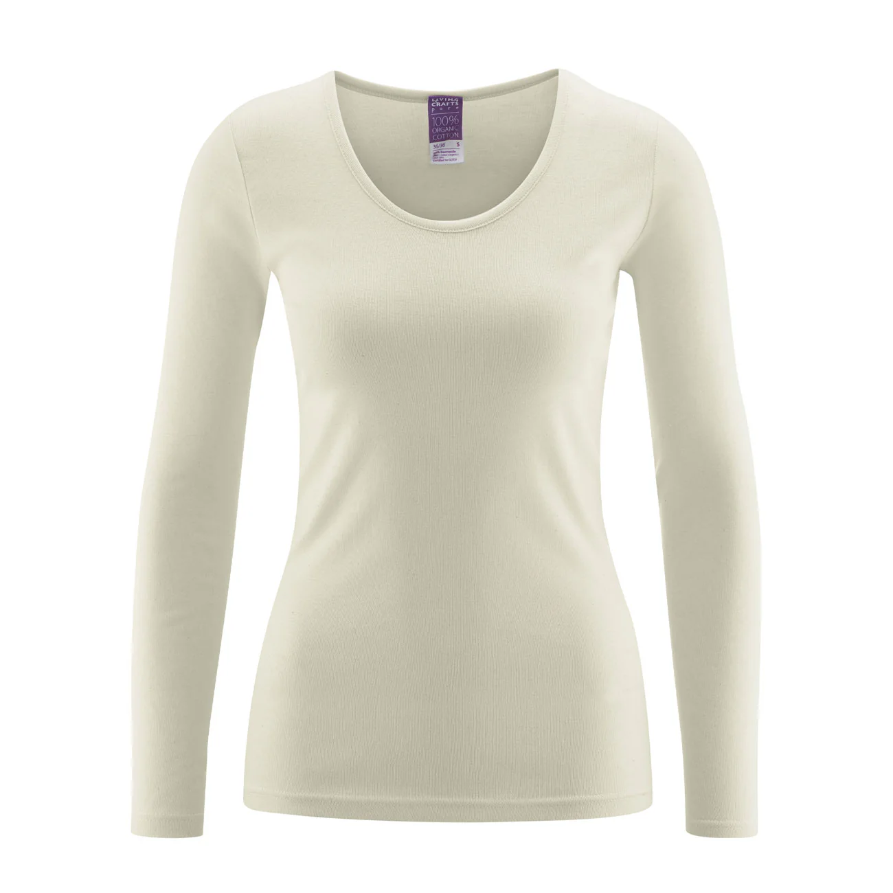 Découvrez votre nouveau haut préféré, conçu pour offrir un confort optimal et une douceur exceptionnelle sur la peau. Confectionné en 100 % coton biologique, ce haut est doté d’un tissu côtelé léger, sans coutures latérales, qui s’adapte parfaitement à tous vos mouvements. Sa coupe polyvalente en fait un essentiel à porter comme maillot de corps à manches longues ou comme un simple haut décontracté. Idéal pour les femmes qui apprécient des vêtements naturellement beaux, confortables et de haute qualité.
