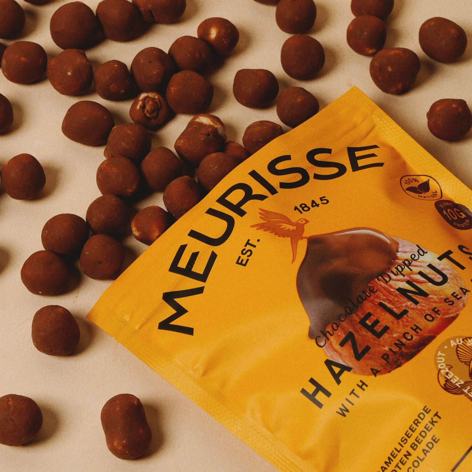 Succombez à l’alliance gourmande et raffinée des noisettes caramélisées, enrobées d’une délicate couche de chocolat au lait et sublimées par une pointe de sel. Les noisettes, croquantes et généreuses (57,8 % du produit), s’imposent comme la star de cette création, tandis que le chocolat au lait (41 %) enveloppe chaque bouchée d’une douceur fondante. L’équilibre entre le croustillant caramélisé, la douceur lactée et la touche salée confère à cette gourmandise une rondeur et une élégance qui séduiront les amateurs exigeants.