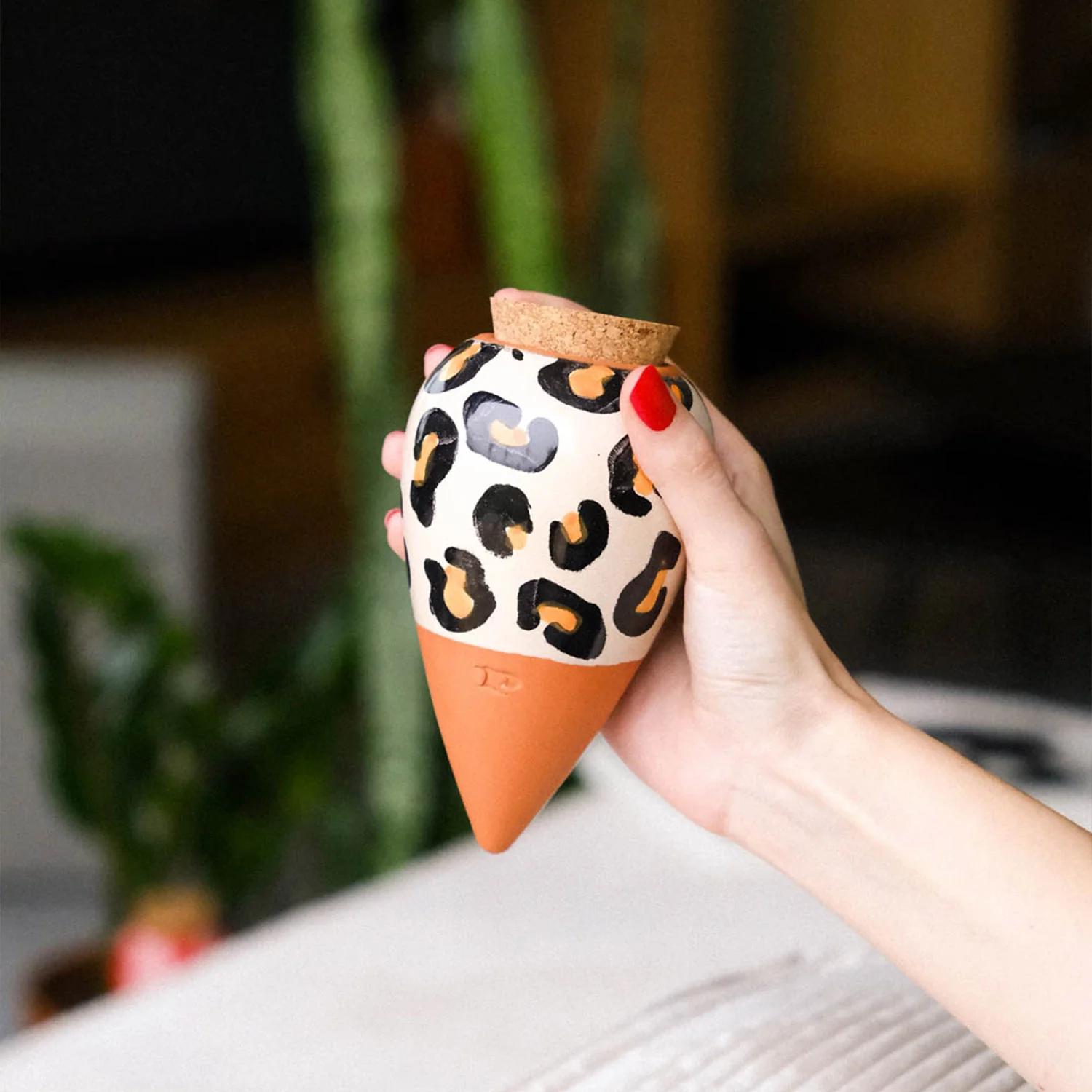 Facile à utiliser, il suffit de le planter dans la terre et le remplir d’eau une fois par semaine, qu’il diffusera ensuite progressivement dans le terreau.