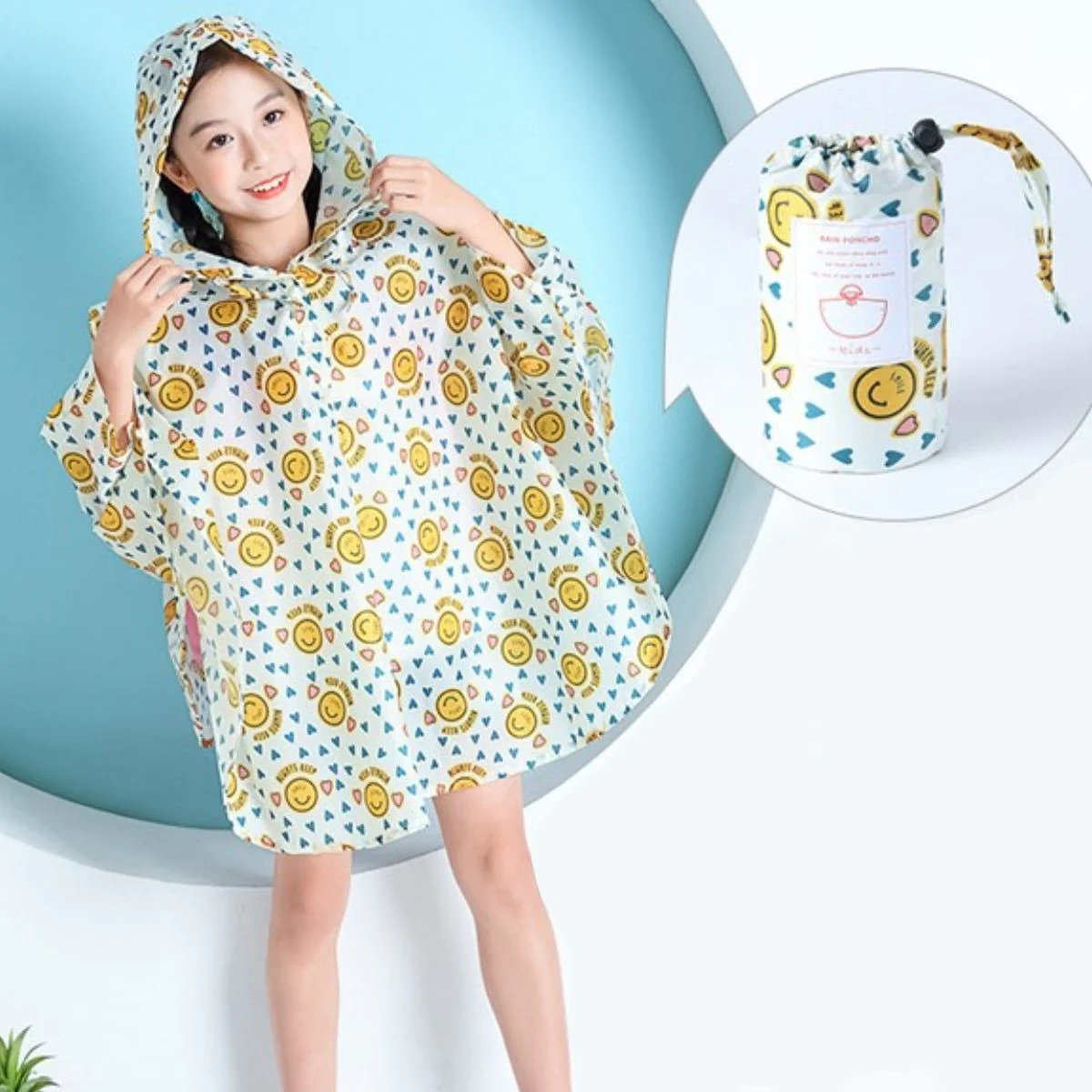Poncho de pluie avec smiley pour enfant
