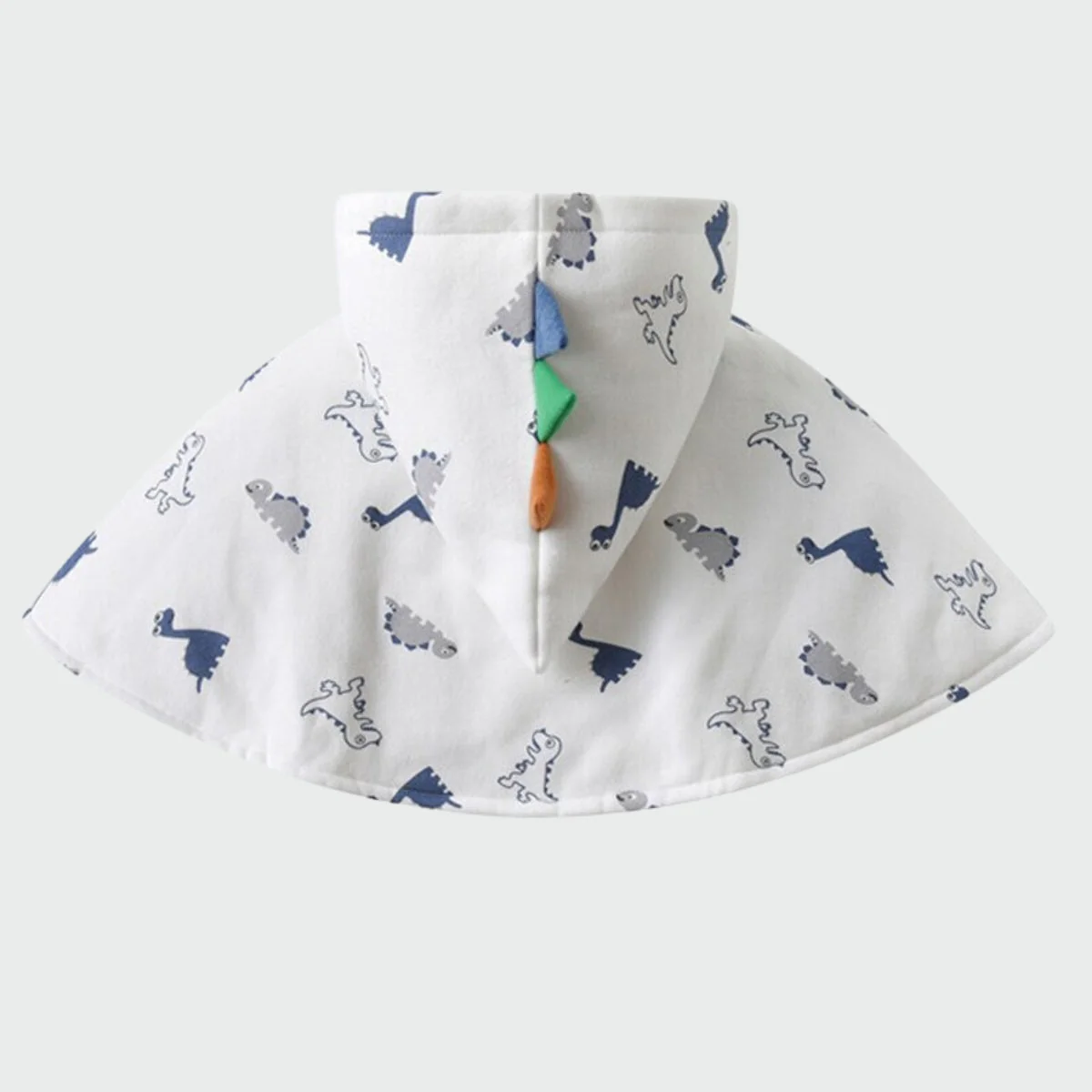 Ce poncho dino est l’un des ponchos les plus mignons que nous vous proposons ! Il présente deux peluches en forme de dinosaures à l’avant, de nombreux dessins de dinos sur toute sa surface ainsi qu’une capuche à crête. Tout pour plaire aux passionnés de ces reptiles d’un autre temps !
