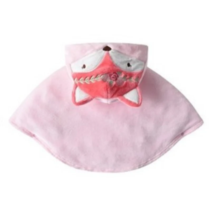 Poncho d’hiver rose pour enfant capuche tête de renard
