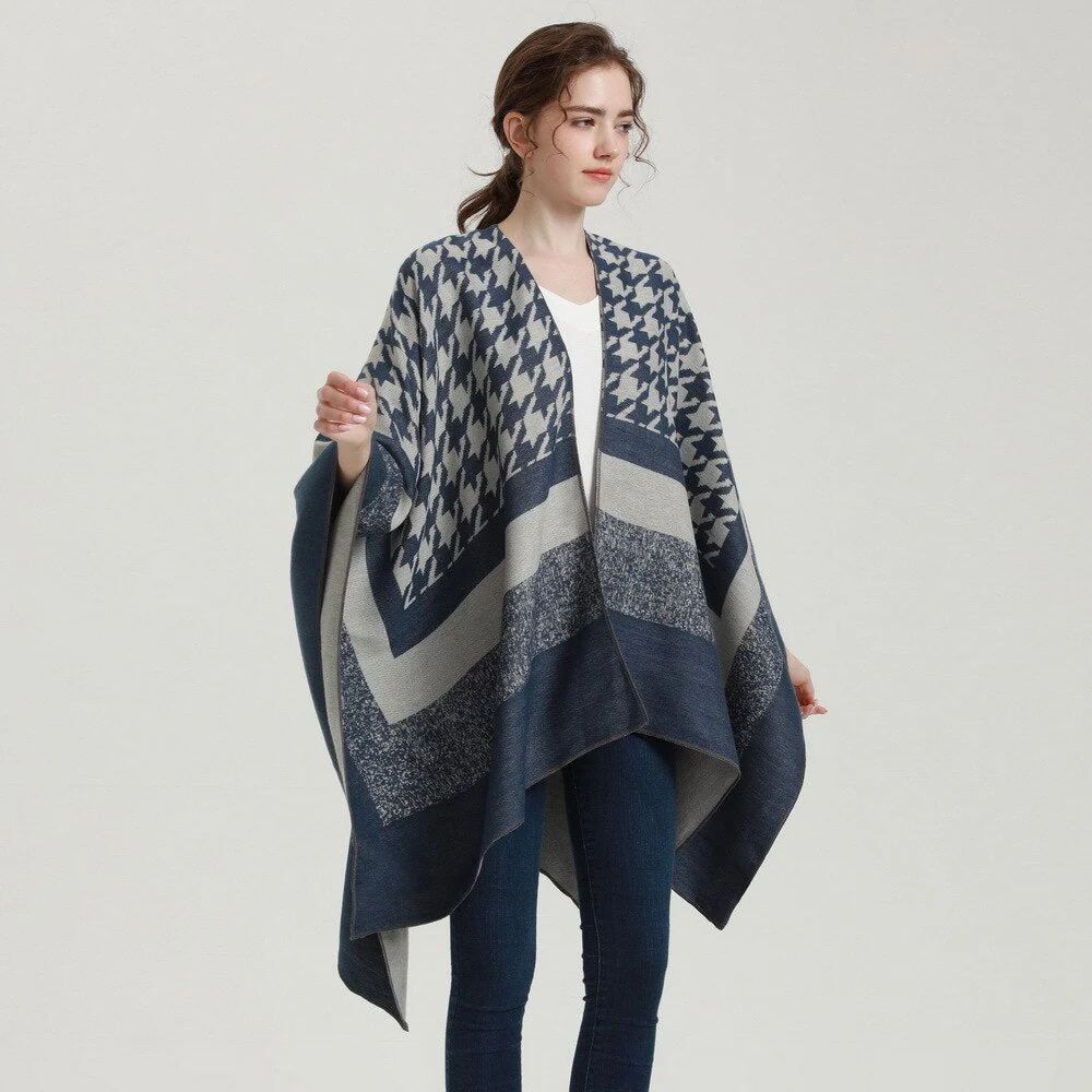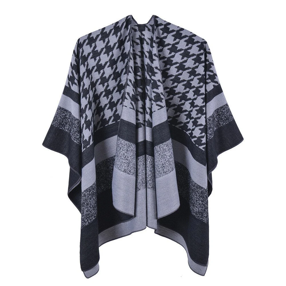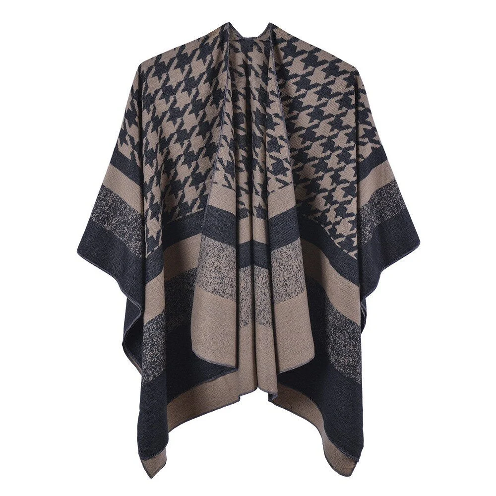 Cette cape d’hiver pour femme aux motifs pieds de poule est une pièce élégante et intemporelle qui ajoute une touche de sophistication à n’importe quelle tenue. Confectionnée avec un tissu de haute qualité, elle arbore un motif classique de pieds de poule, offrant un charme rétro et chic. Sa coupe ample et fluide assure un confort optimal, tandis que sa palette de couleurs contrastantes apporte une esthétique raffinée. Polyvalente et élégante, cette cape est parfaite pour compléter vos looks automnaux et hivernaux avec style et élégance.