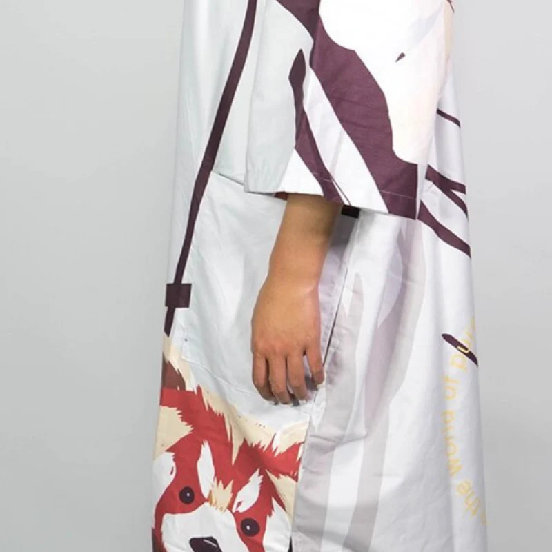 Enfilez ce poncho de surf au style moderne et féminin pour vous sécher rapidement en sortant de l’eau ! Il présente des dessins de renard à l’avant et sur la capuche pour une touche originale. Son tissu confortable en microfibre absorbera l’eau sur votre corps pendant que vous vous reposez tranquillement entre deux sessions de surf. Vous pouvez utiliser cette tenue de surf pour enfiler votre maillot sur la plage à l’abri des regards. Il possède en outre des poches sur le côtés pour y ranger quelques effets personnels.