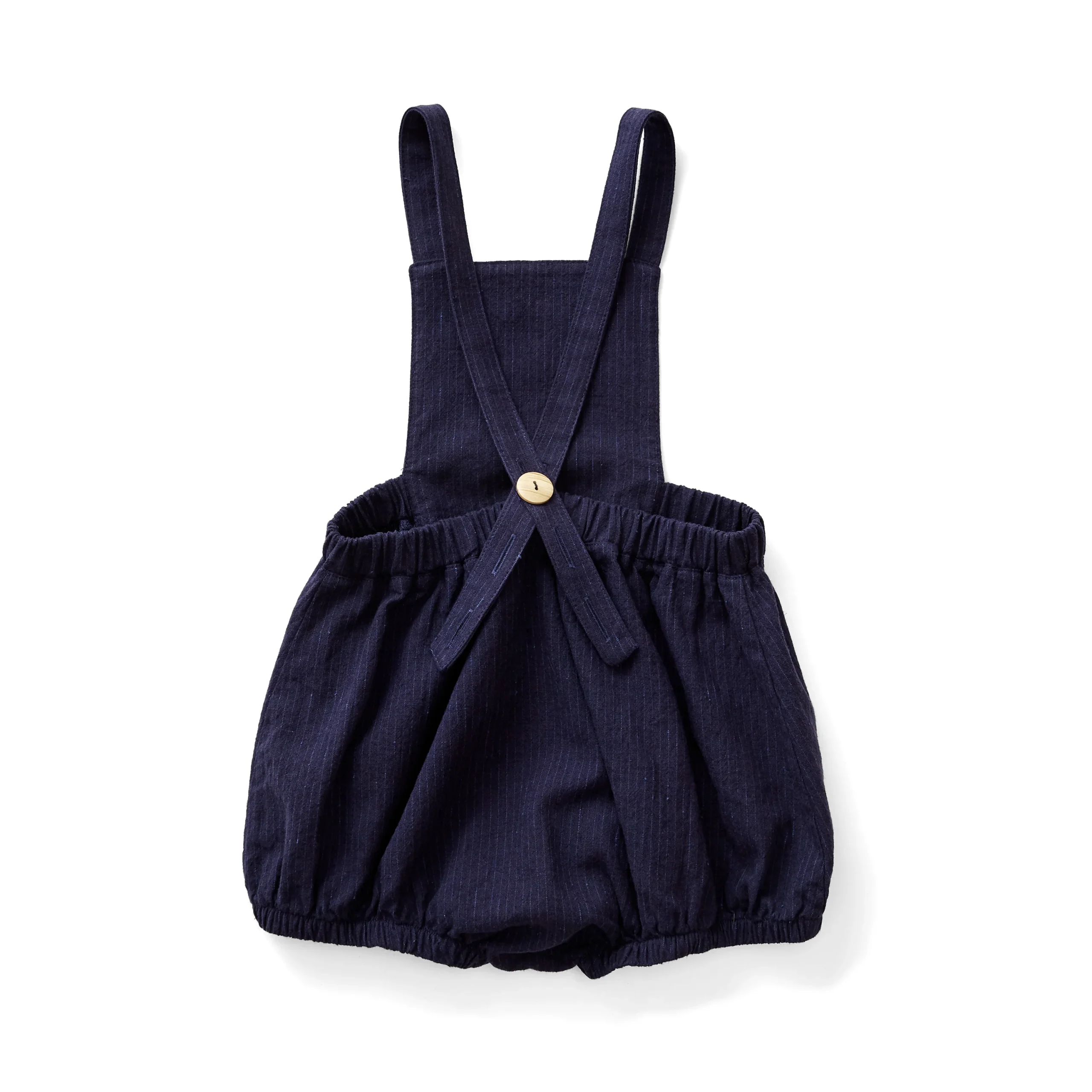 La barboteuse classique de Soor Ploom avec sa poche sur le devant. Les bretelles se croisent et s’ajustent à l’arrière avec un seul bouton en bois.