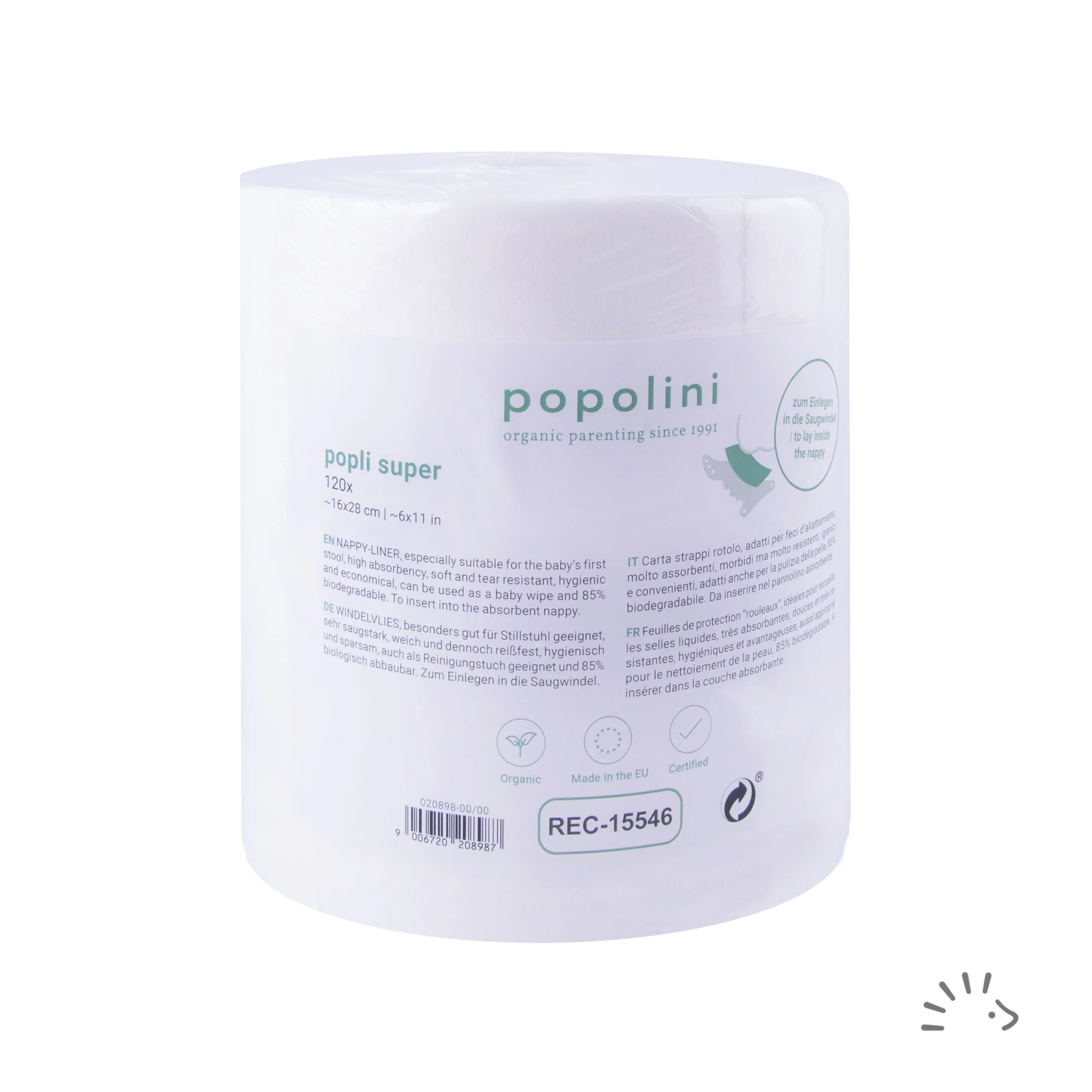 Le rouleau de voiles en cellulose Popli ,facilite le nettoyage des couches lavables, il protège l’absorbant et évite que les selles n’attachent dessus.