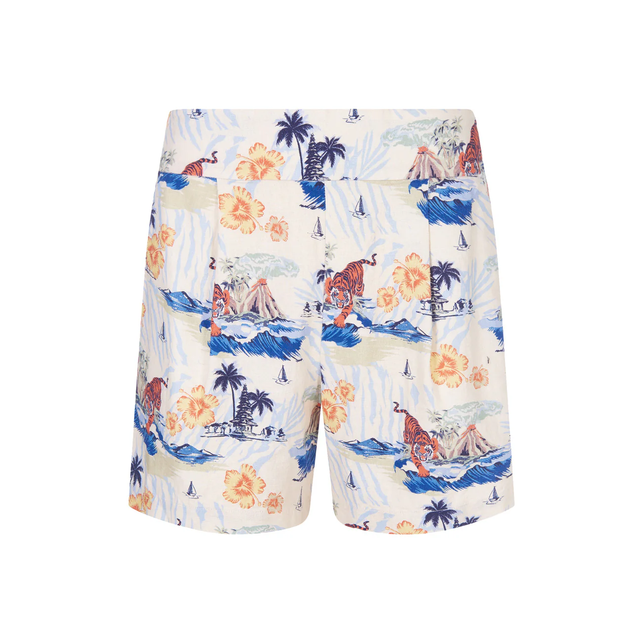 Évadez-vous dans le confort et le style avec notre short MUNI, orné d’un audacieux imprimé tigre. Parfait pour les vacances ou vos moments de loisir, ce short combine esthétique moderne et engagement éthique.