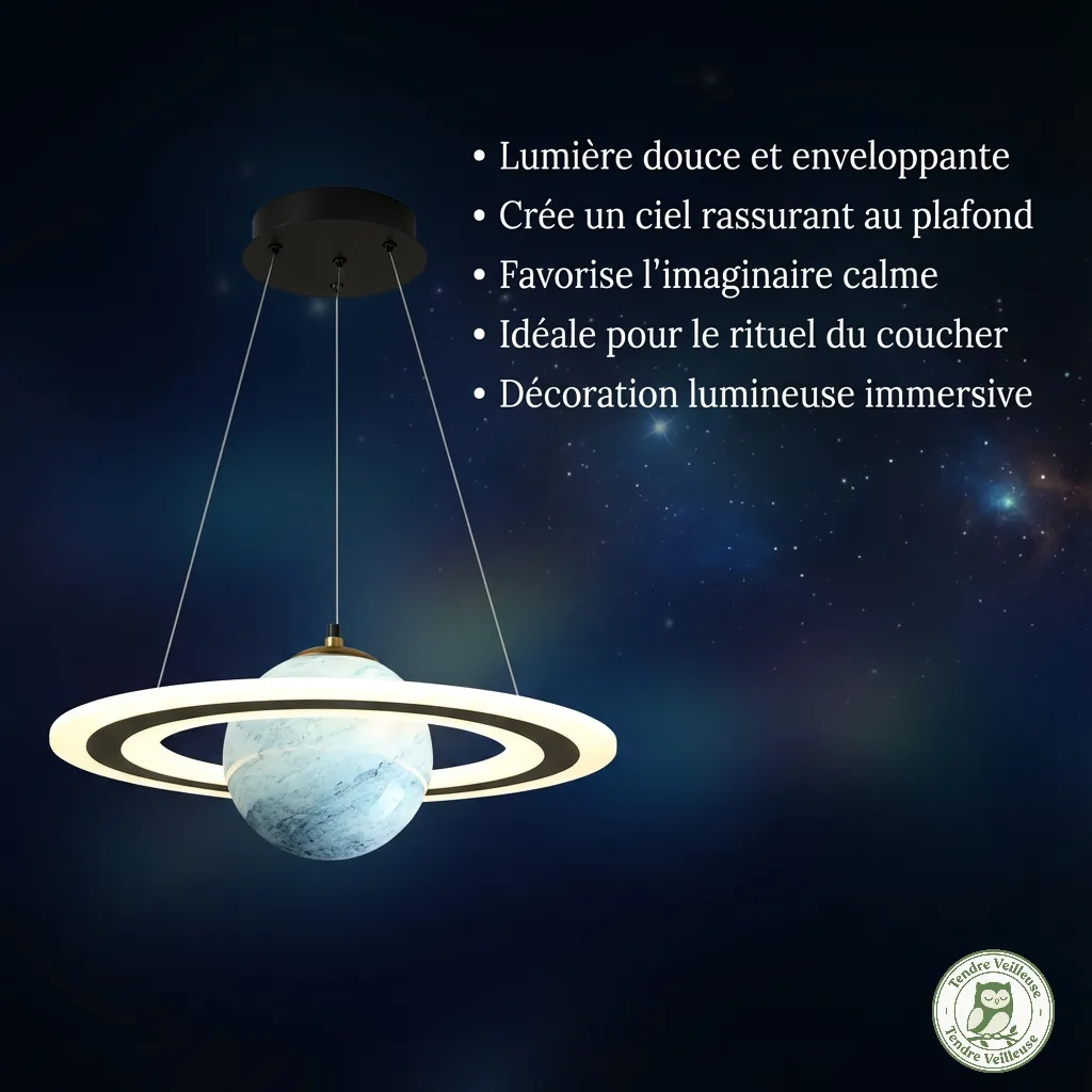 - Design « Saturne » : Un anneau lumineux élégant entoure la planète pour un effet de profondeur saisissant.